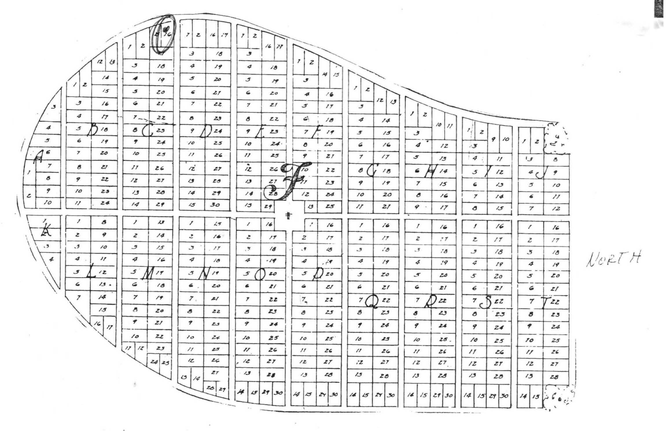 Plot Map of Section F, showing where Space 2 of 16 C would be located