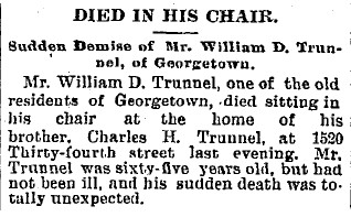 May 8, 1891 issue of The Washington Post; Page 1, Obituary for William D. Trunnel