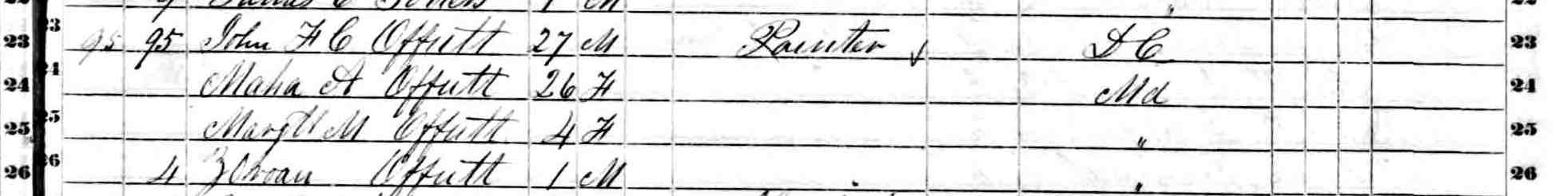 1850 Federal Census; 18th Ward Baltimore, Baltimore County, MD; household of John F. C. Offutt; magnified