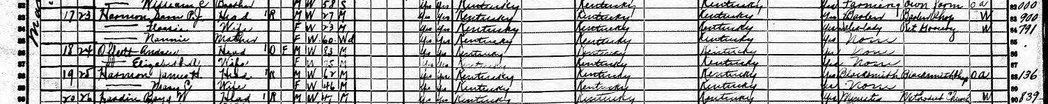 1920 Federal Census; Lebanon, Marion County, KY. Household of Andrew Offutt