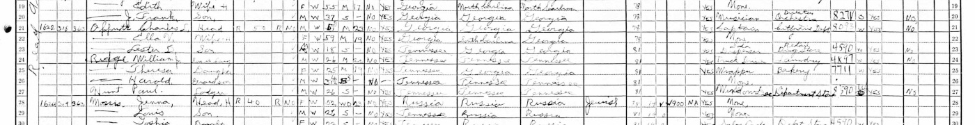 1930 Federal Census; 5th Ward, Chattanooga, Hamilton Cty, TN. Household of Charles L. Offutt