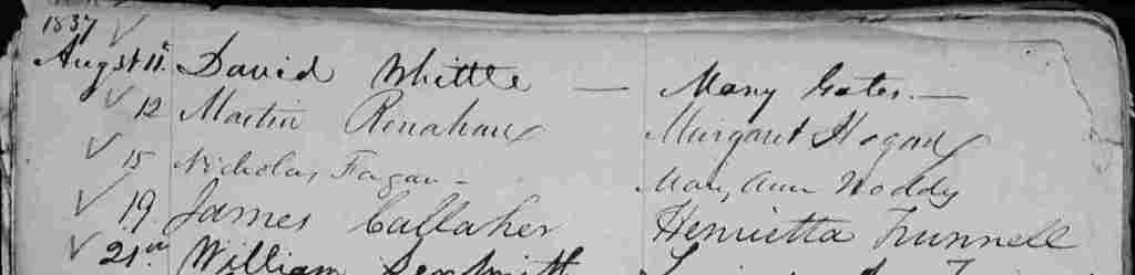 Marriage Register page showing Martin Renahan and Margaret Hogan
