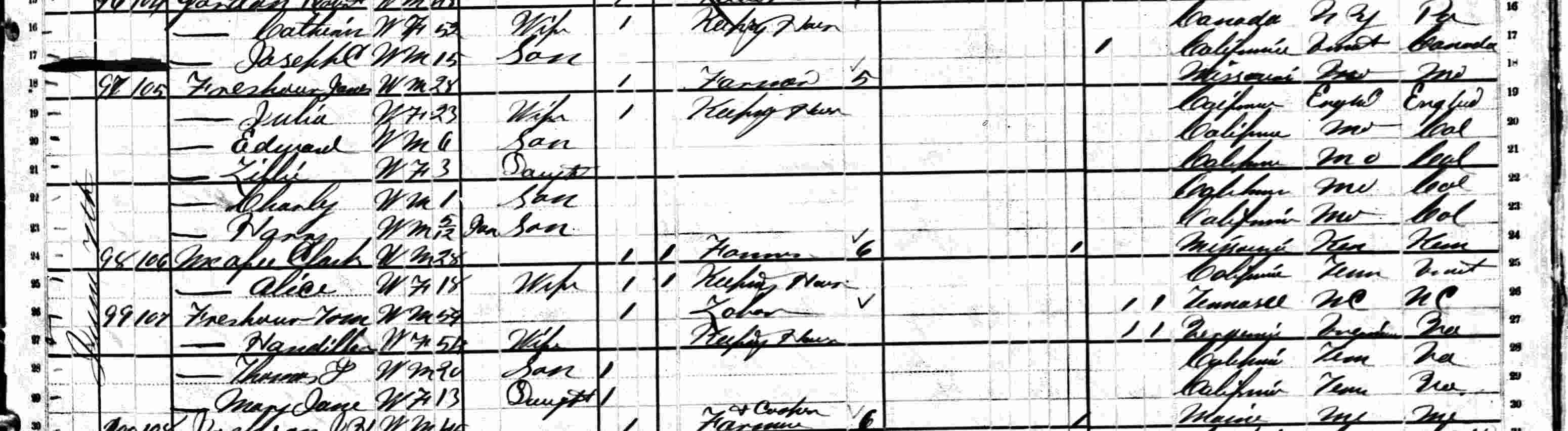 1880 Federal Census; Adin Township, Modoc Cty., CA. Household of Thomas Freshour