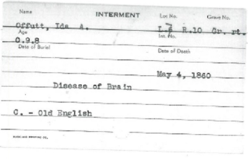 Internment Record for Ida A. Offutt