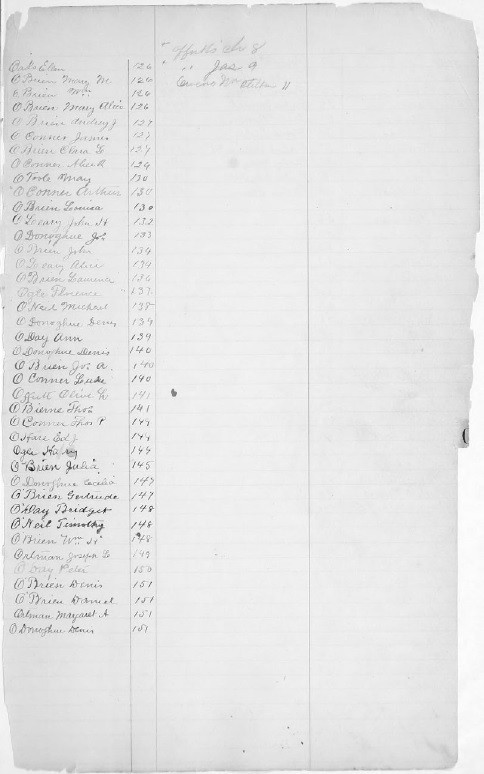 Second index page for the letter O in Holy Trinity Church Internment Register, Holyrood Cemetery for 1867 - 1898
