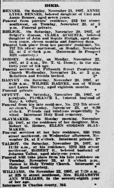 Printed in the November 22, 1897 issue of The Evening Star, on page 5