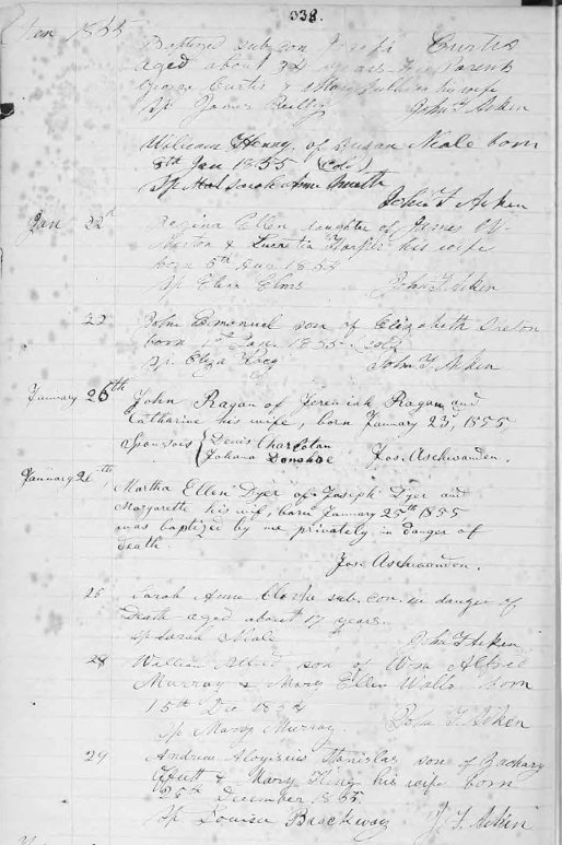 Holy Trinity Church Baptism Register Page 338, Andrew Aloyisius Stanislas Offutt, January 29, 1855