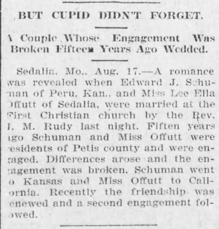 Wedding of Miss Lee Ella Offutt to Edward J. Schuman