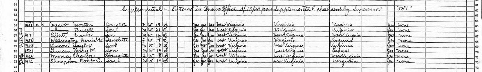 1920 Census of Huntington, Cabell County, WV; Frank Offutt