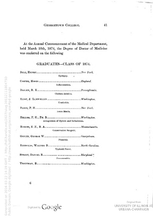Catalogue of Officers and Students of Georgetown College, District of Columbia for the academic year 1873 - 1874 page 41.
