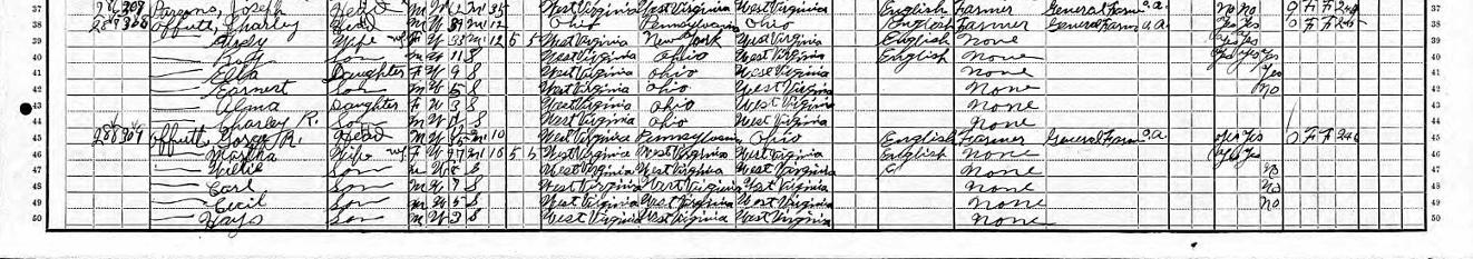 1910 Census of Lee District, Calhoun County, WV; Charley Offutt