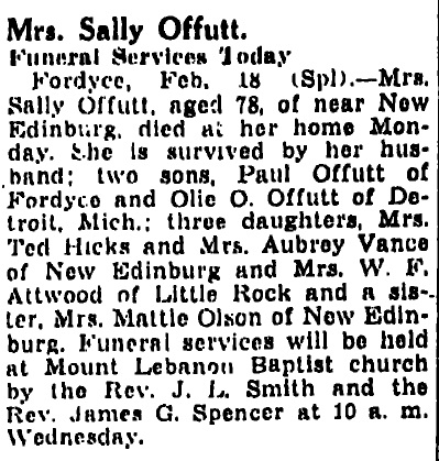Death of Mrs. Sally Offutt
