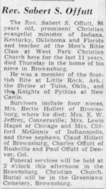 Obituary for the Rev. Sabert S. Offutt