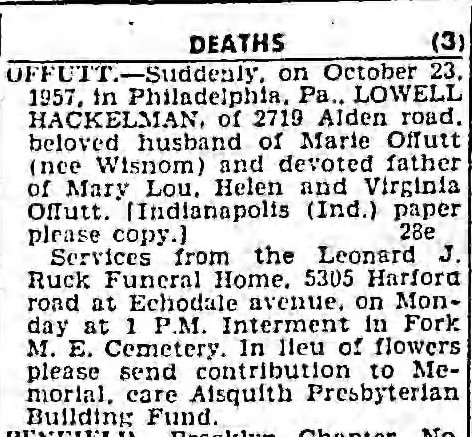 Death of Lowell H. Offutt