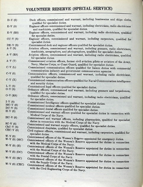Page VI of "Register of Commissioned and Warrant Officers of the United States Naval Reserve