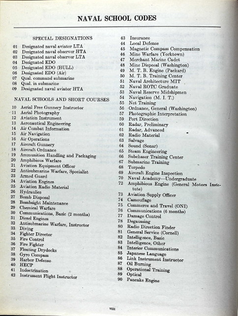 Page VIII of "Register of Commissioned and Warrant Officers of the United States Naval Reserve