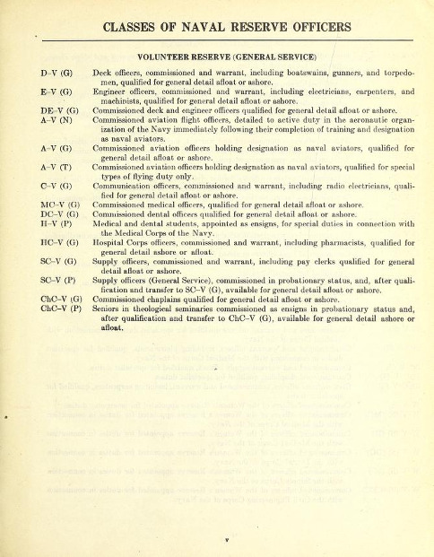 Page V of "Register of Commissioned and Warrant Officers of the United States Naval Reserve