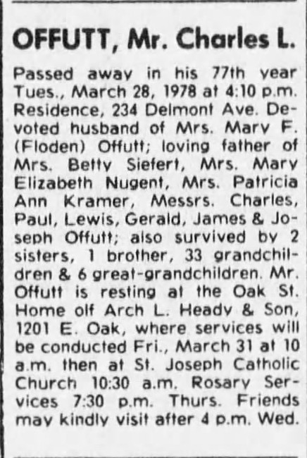 Funeral Notice for Charles L. Offutt