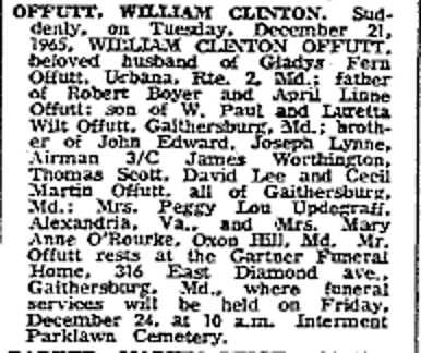 Printed in the Wednesday, December 22, 1965 edition of The Evening Star on page B-5