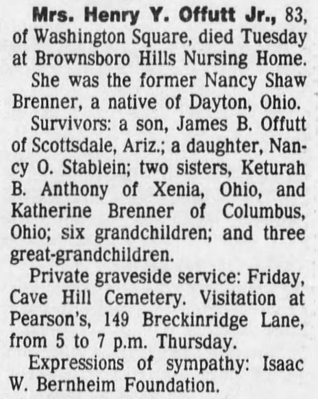 Obituary for Mrs. Henry Y. Offutt Jr.