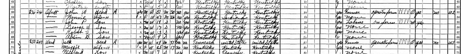 1930 Federal Census; Magesterial District 2, Union County, KY. Household of John W. Ofutt (As listed)