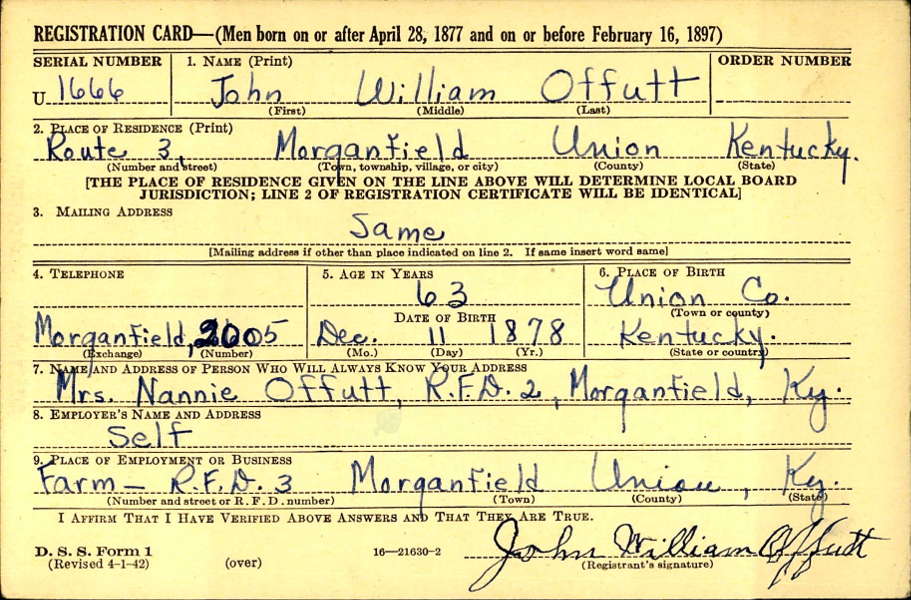 Draft Registration Card for John William Offutt