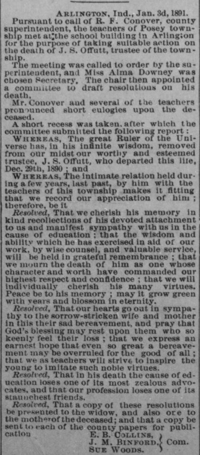 Printed in the Thursday, January 8, 1891 edition of The Rushville Republican on page 6