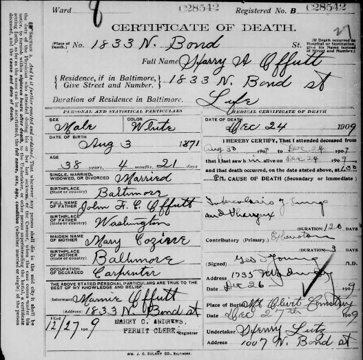Certificate of Death for Harry A. Offutt