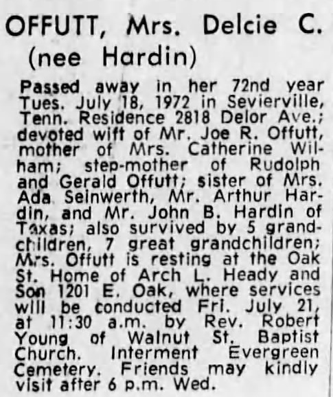 Obituary for Delcie C. Offutt (Nee Hardin)