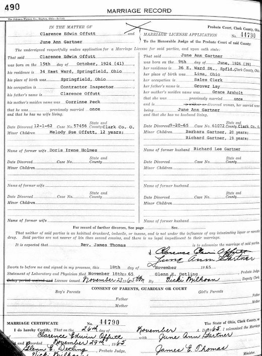Groom Clarence E. Offutt, Bride June Ann Gartner