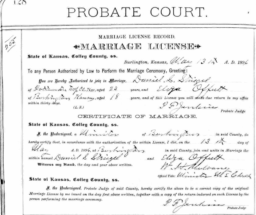 Coffey County Kansas Marriage License and Certificate of Marriage