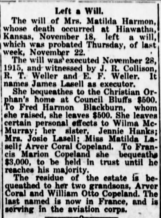 Printed in the Friday, November 17, 1917 edition of The Holt County Sentinel on page 4