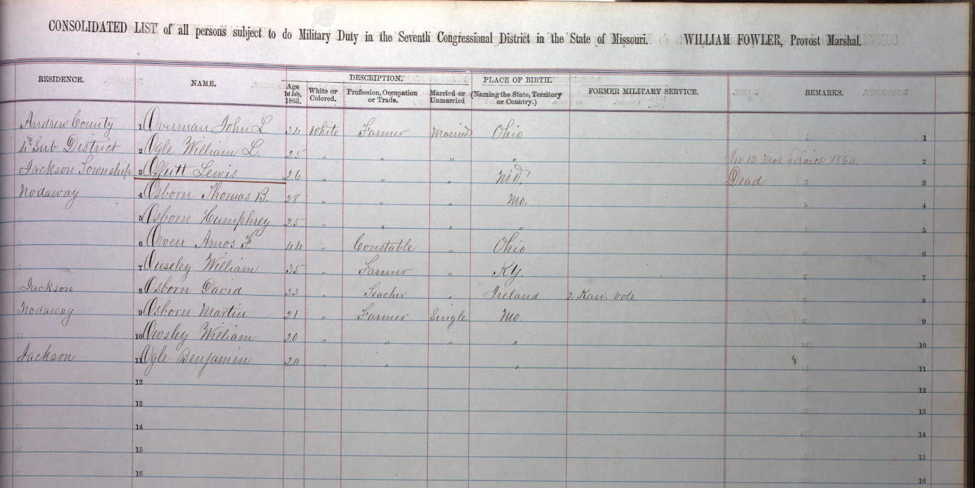 Consolidated List of Persons Subject to Military Duty in the 7th Congressional District of Missouri, Andrew County