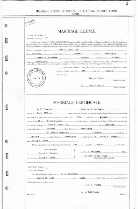 Marriage of James E. Offutt Jr. to Elizabeth Casperson
