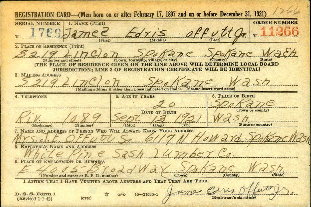 Draft Registration card for James Edris Offutt Jr.