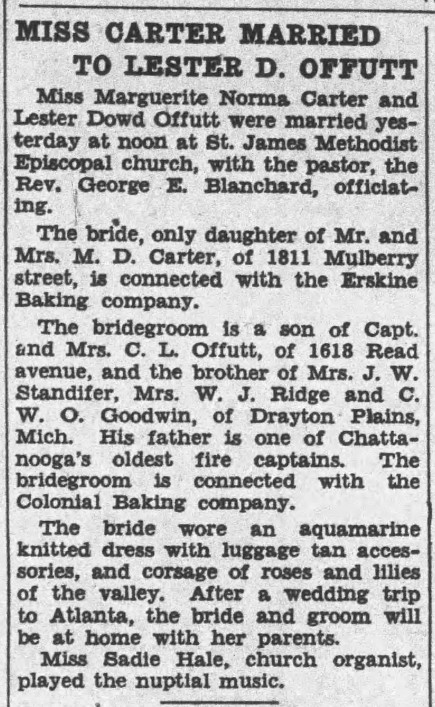 MISS CARTER MARRIED TO LESTER D. OFFUTT