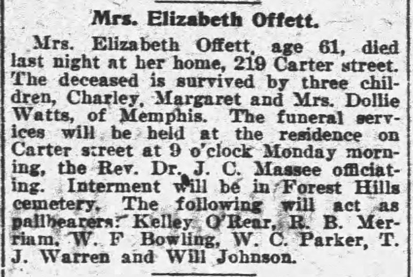 Obituary for Mrs. Elizabeth Offett