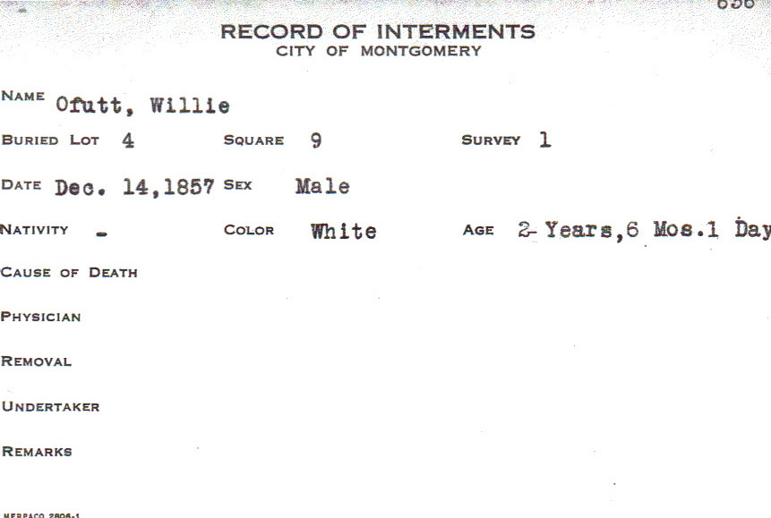 Interment Card for Willie Offutt