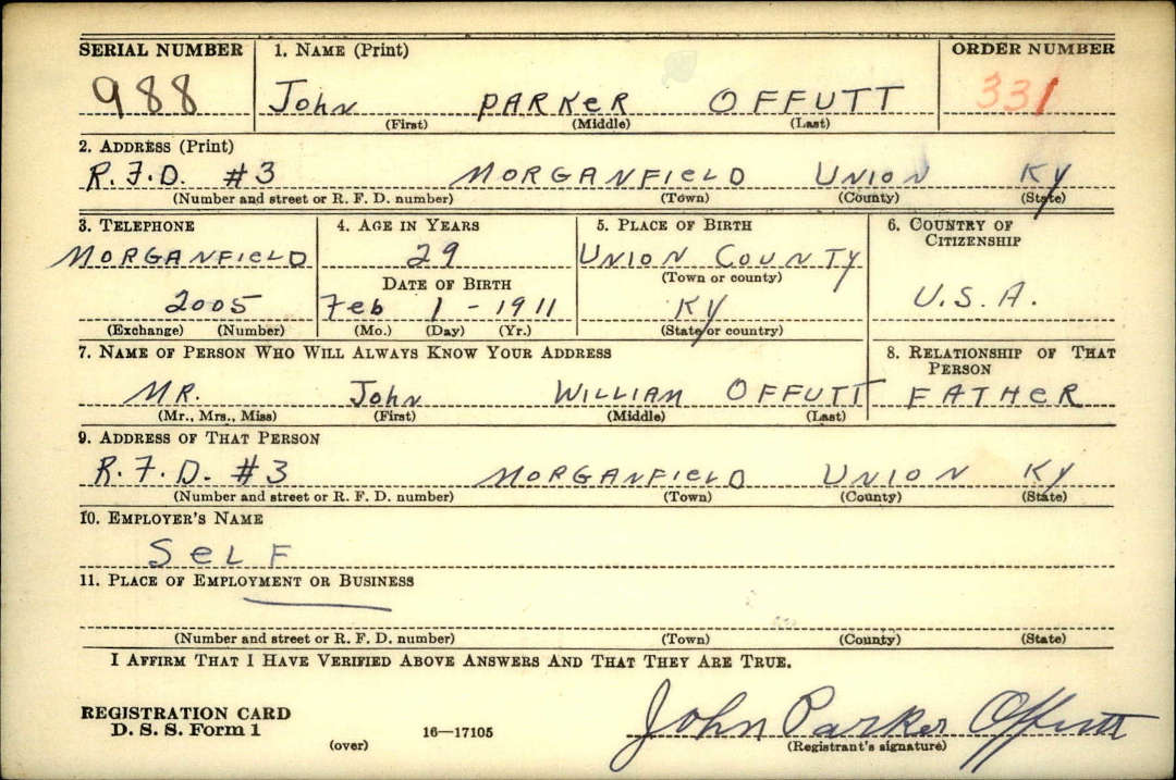 Draft Registration card for John Parker Offutt