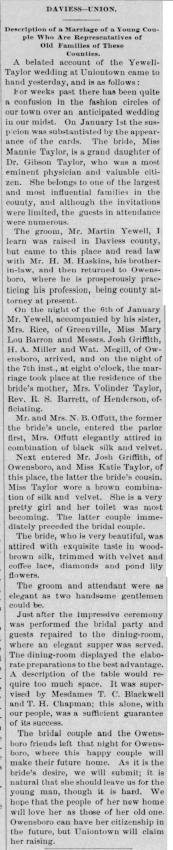 Wedding of Mannie B. Taylor and Martin Yewell