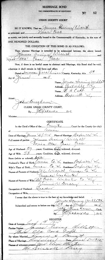 Marriage of James Irving Willett and Miss Ola Casa Cobb