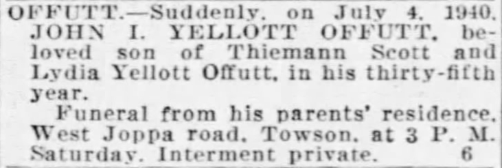 Printed in the Saturday, July 6, 1940 edition of The Sun on page 16