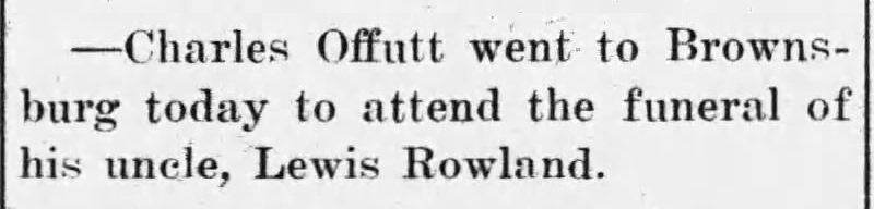 Travel of Charles Offutt for funeral of his uncle Lewis Rowland