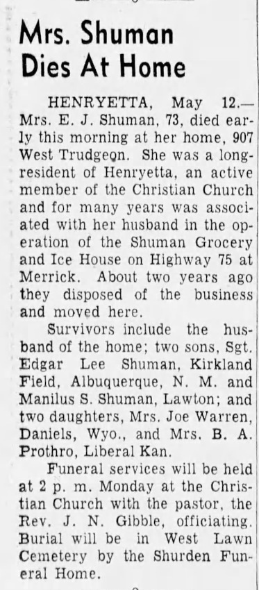 Printed in the Sunday, May 13, 1945 edition of the Sunday Times-Democrat on page Two.