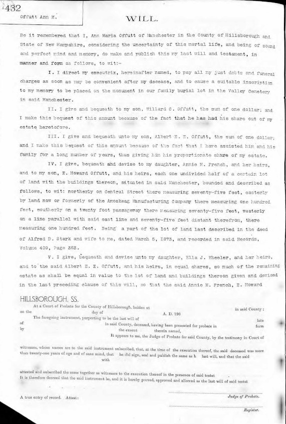 Will of Ann Maria Offutt