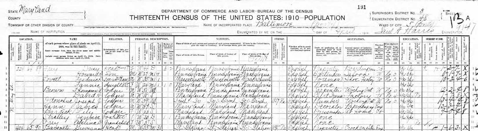 1910 Federal Census; 5th Ward, Baltimore City, MD.
