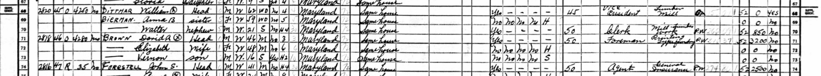 1940 Federal Census; Baltimore City, Maryland. Household of David A. Brown