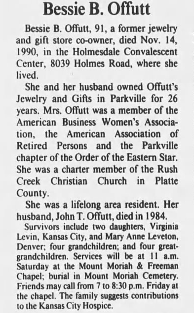 Printed in the Thursday, November 15, 1990 edition of The Kansas City Star on page C-8