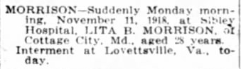 Printed in the Thursday, November 14, 1918 edition of The Washington Herald on page 9