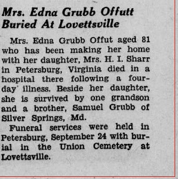 Burial of Mrs. Edna Grubb Offutt